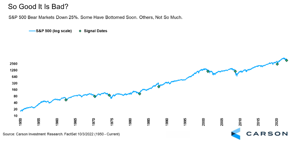 We understand feelings of concern here at the Carson Investment Research team. Could stocks bottom and rally? We think there’s an above-average chance. And a chance is all we need. And to quotes Lloyd Christmas again …