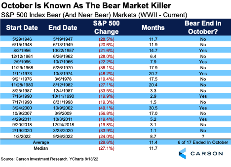 We all blinked, and it is now October. This can be a good thing if you’re hoping for some higher stock prices. As this great quote by Shelby Cullom Davis above explains, it is the decisions that people make in a bear market that may greatly impact their investments down the road.