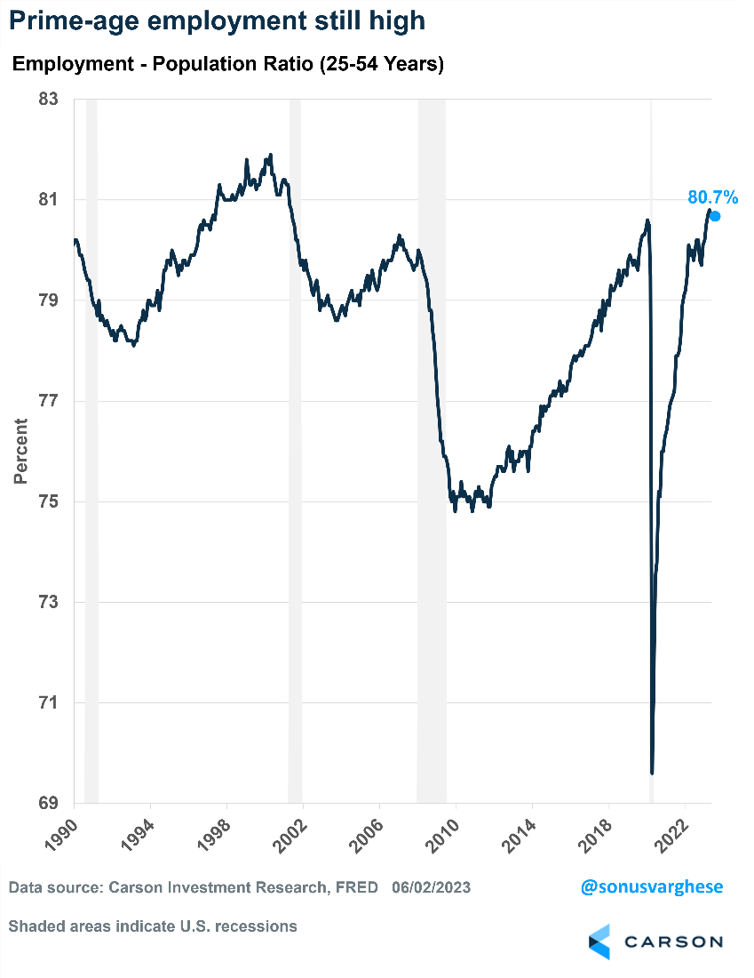 Two months of payroll data have been reported since the Silicon Valley Bank crisis in March, and nothing suggests weakness arising from the banking crisis.
