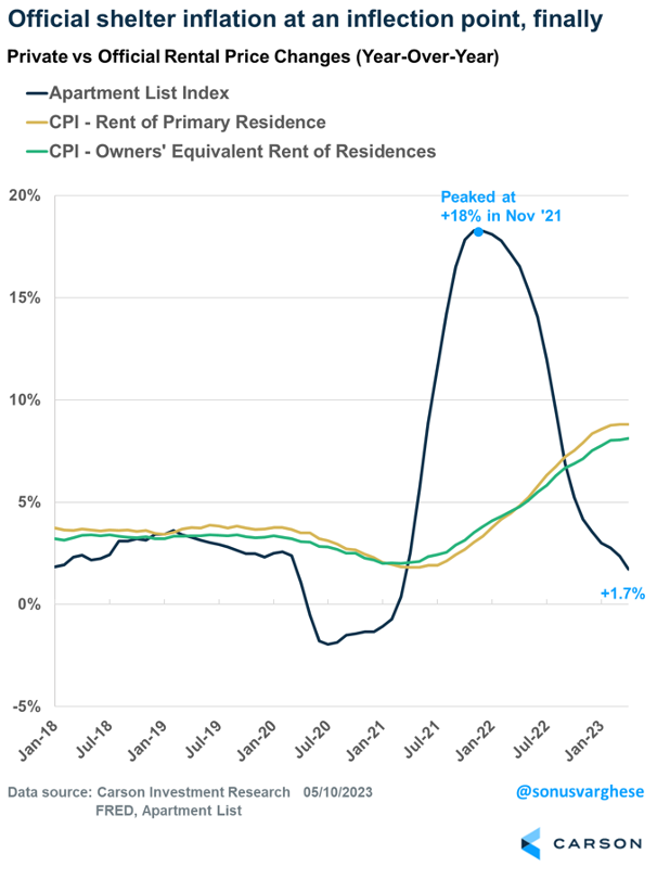 - The good news is housing inflation appears to be at an inflection point and is likely to drive core inflation lower in the second half of 2023.
