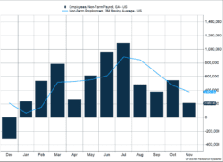 Job creation news was mixed but generally positive. The establishment survey, which includes business reporting, indicated jobs grew by only 210,000 and missed expectations for gains of 530,000. The combined estimated job growth in September and October was increased by 82,000, indicating overall that job growth remains fairly strong.