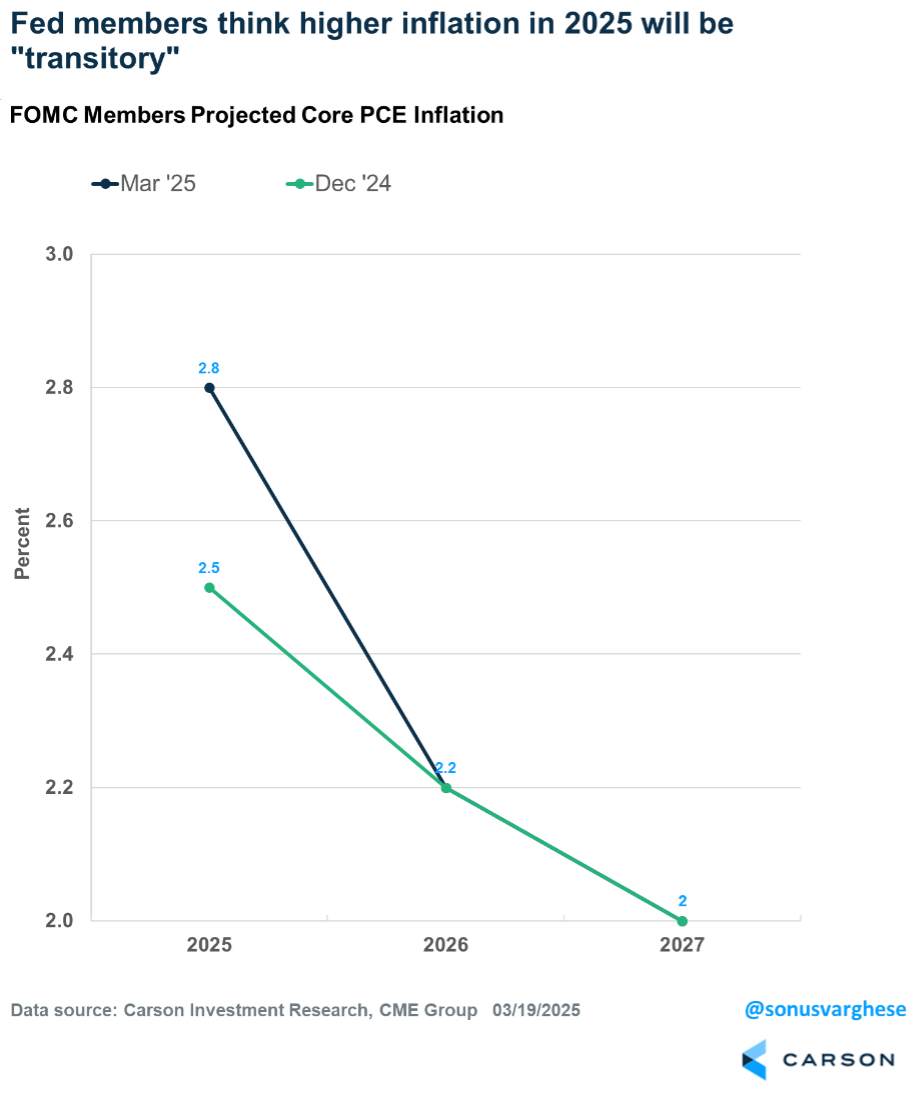 • Their 2025 core PCE projection rose from 2.5% to 2.8%