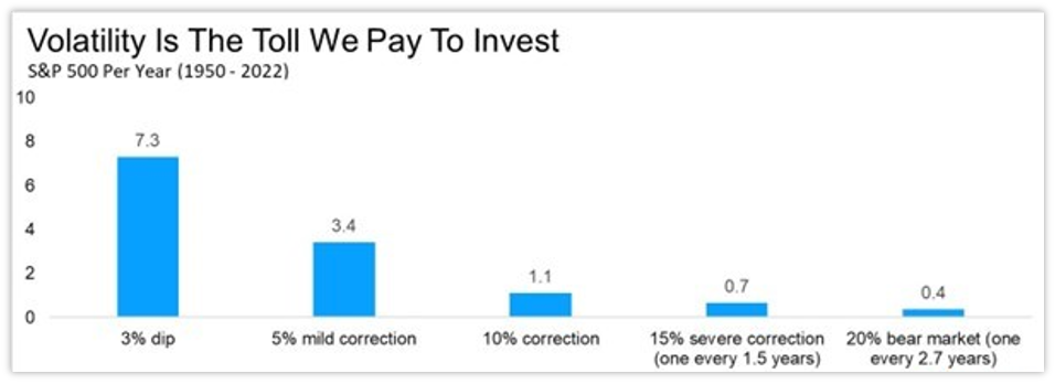 This is only the second 5% mild pullback of the year and investors need to remember that most years see more than three of these pullbacks on average. Even last year, as great as it was for stocks, we saw a 10% correction from late July until late October, followed by a huge end of year rally. We like to say volatility is the toll we pay to invest and last week was quite the reminder of this.