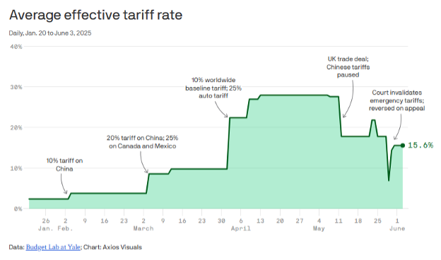 We still have no idea what the end game is yet with many of the announced but paused tariffs. The average effective tariff rate in the US was about 2% at the start of the year. It’s certainly going to be much higher than that. It’s currently around 15%, but it’s an open question whether it stays there, or moves closer to 10%, or moves even higher than 20%.