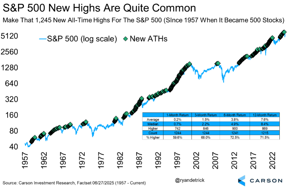 What a wild ride 2025 has been and it is only halfway over! After being down nearly 20% at the lows in April, stocks have staged one of the largest reversals ever and on Friday moved back to new highs.