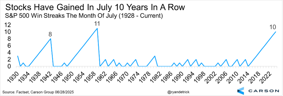 Adding to the fun, July has been higher an incredible 10 years in a row, only one away from tying the longest July win streak ever from the ‘40s and ‘50s.