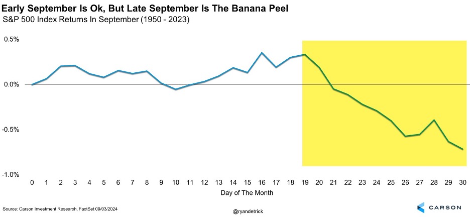 Following the worst week since March 2023 for the S&P 500 in the first week of September, the index soared 4.1% last week and was higher all five days of the week, completing a perfect week. Interestingly, August also had a perfect week, making this the first time since September and October 2019 we saw back-to-back months with a perfect week.