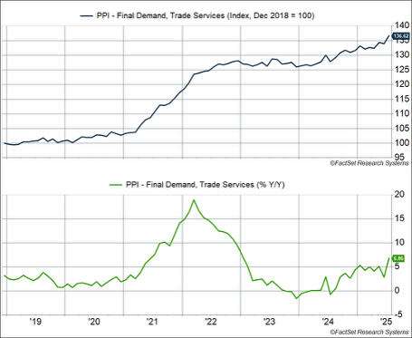 One thing to keep in mind is that rising core goods prices are a break from the 2023-2024 trend (and even the 25-year pre-pandemic trend) when core goods prices steadily fell. Now, tariff-related increase should be a one off, or “transitory,” and ideally, something the Fed can look through. The problem is that there was concerning acceleration in “supercore” inflation (services inflation excluding energy and shelter), which climbed to 3.3% year over year, a five-month high. The Atlanta Federal Reserve calculates something called the Sticky Price CPI excluding food, energy, and shelter. It measures inflation for items whose prices typically don’t change frequently, and it is now up 2.8% on the year, an eight-month high. The story here is that we may be seeing inflation broadening out rather than remaining isolated to those areas of the economy most immediately impacted by tariffs. Despite the positive market reaction to the report, if inflation in fact is broadening it could make the Fed’s task more difficult.