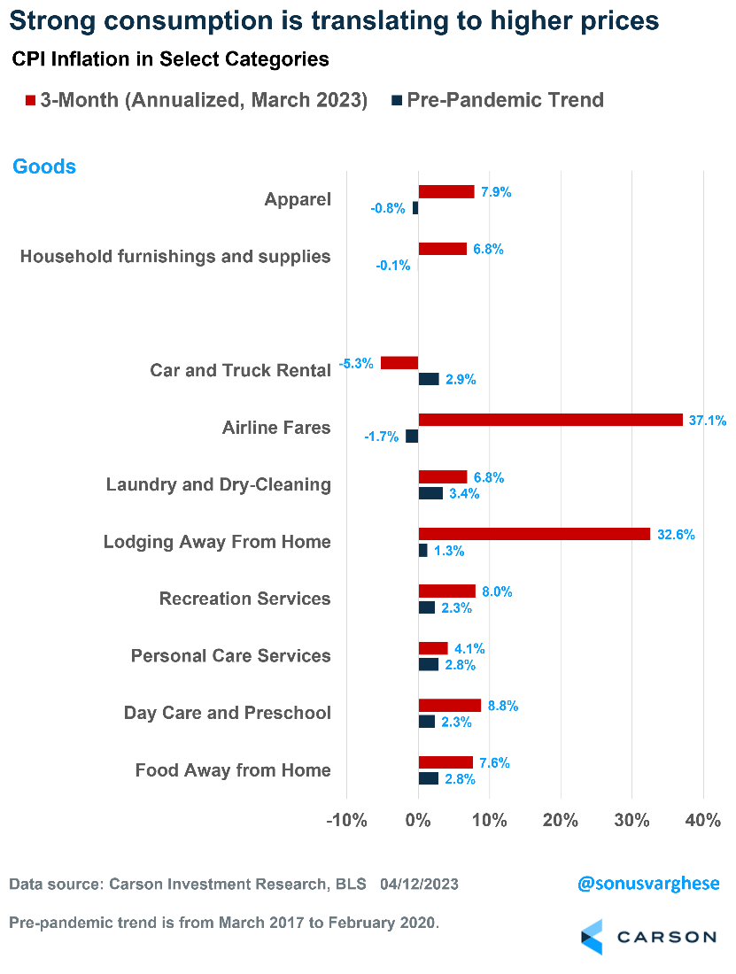Stubborn inflation in these areas indicates demand for goods and services remains strong.
