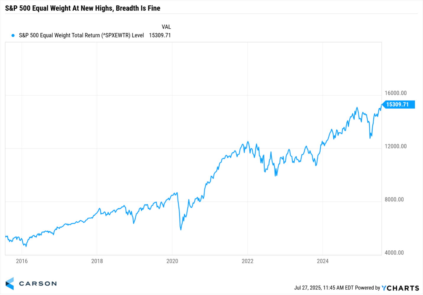 The incredible bull market continues, with the S&P 500 closing at a new all-time high each day last week. November 2021 was the last time we saw that usual feat. For the year, the S&P 500 is now up 8.6%, a long, long way from down 15% back in early April. We remain optimistic that this bull market is alive and well, but be aware August is right around the corner and this is one month that tends to be volatile and historically has seen some scary events appear out of the blue.