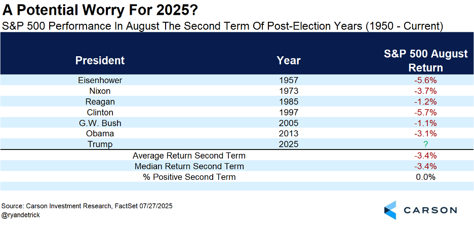 By no means are we saying this bull market is over. We don’t think it is. But after a 28% rally off the April lows, we’d suggest being open to some potential volatility this August, as this is a month known for it.