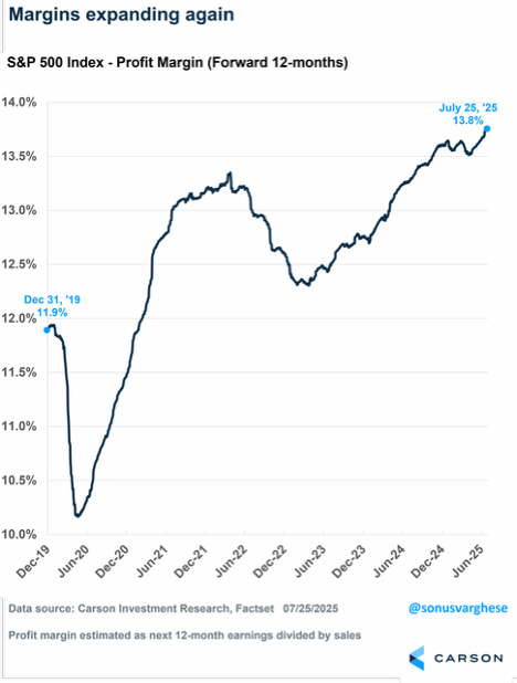 Let’s be clear, we still expect stocks to be higher by year-end than they are now. But that doesn’t mean we won’t have a few scary moments this August, so start preparing for them now. Why are we optimistic? Earnings are hitting record levels and profit margins are hitting new cycle highs. We’ve talked about these two things for years now and called them the dual tailwinds to this bull market and the good news is nothing has changed. If there is some August weakness use it as an opportunity to practice not getting pulled into any overhyped negative sentiment we may see (like many did successfully during the volatility earlier this year).