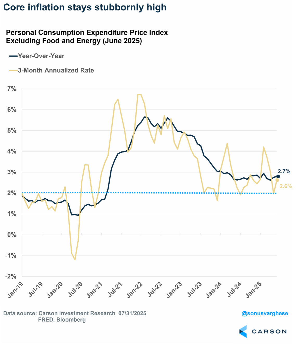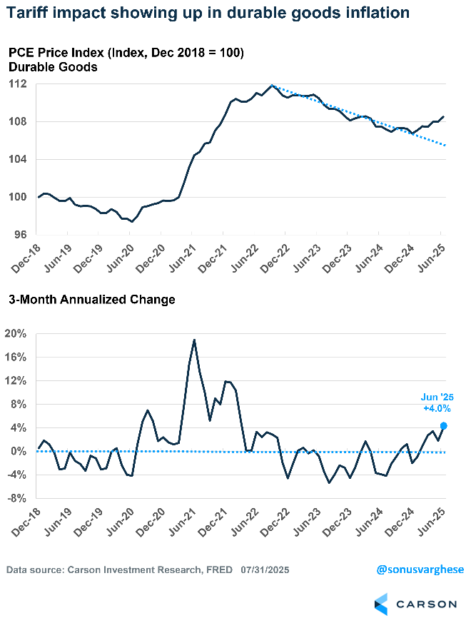 - Elevated inflation, driven by goods prices, is staying the Fed’s hand despite labor market weakness, and more tariffs on August 1st will not help.