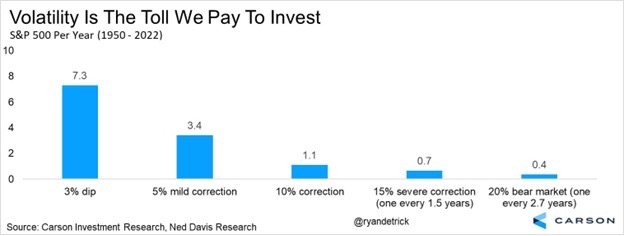 - There tends to be one 10% correction per year, while a bear market happens close to every three years on average.